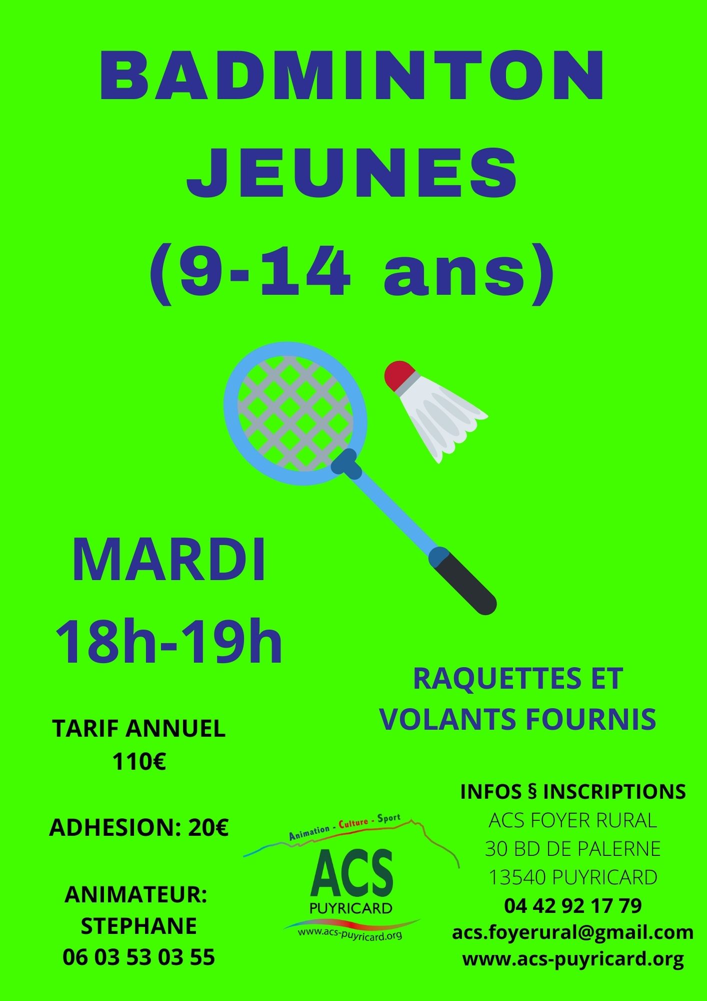 Rejoignez la section Badminton jeunes de l'ACS Puyricard et venez jouer le mardi soir (18h00-19h00).