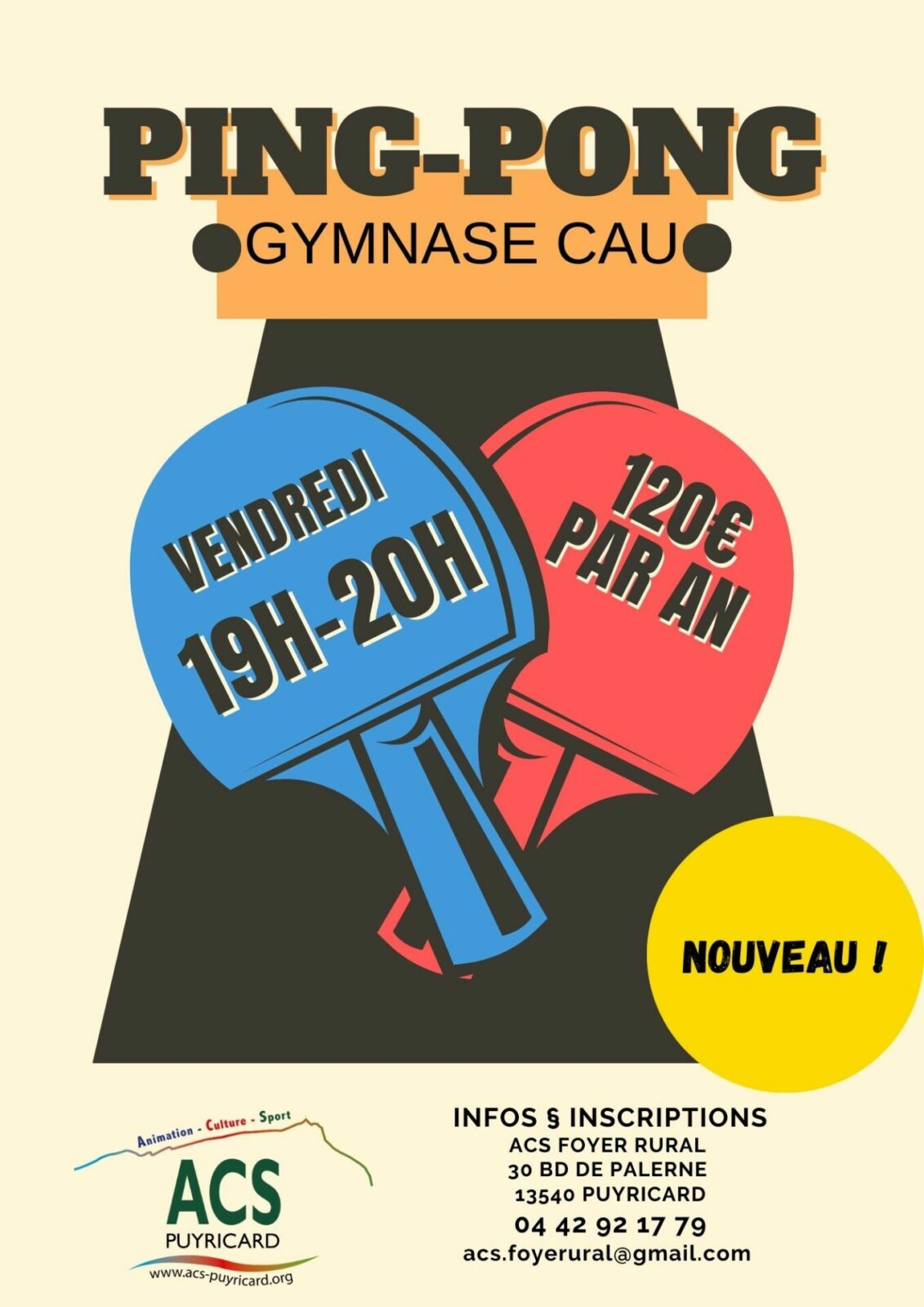 Pratiquez le Ping Pong avec l'ACS Puyricard tous les vendredis de 19h à 20h.