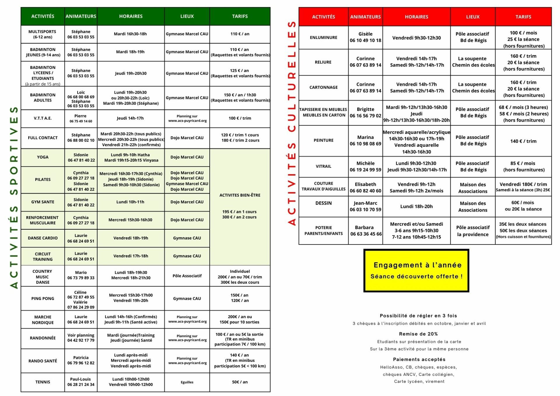 Planning activités